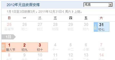 1月1日至3日放假3天,2011年12月31日(周六)上班。