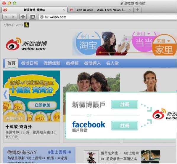 消息稱(chēng)新浪微博在香港/臺灣打通Facebook賬號登陸