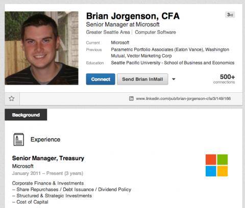 據《西雅圖時(shí)報》稱(chēng),喬根森曾在微軟供職三年,年薪13萬(wàn)美元,任財政部門(mén)高級經(jīng)理。他從事內幕交易一事在上個(gè)月曝光,隨后被微軟解雇。