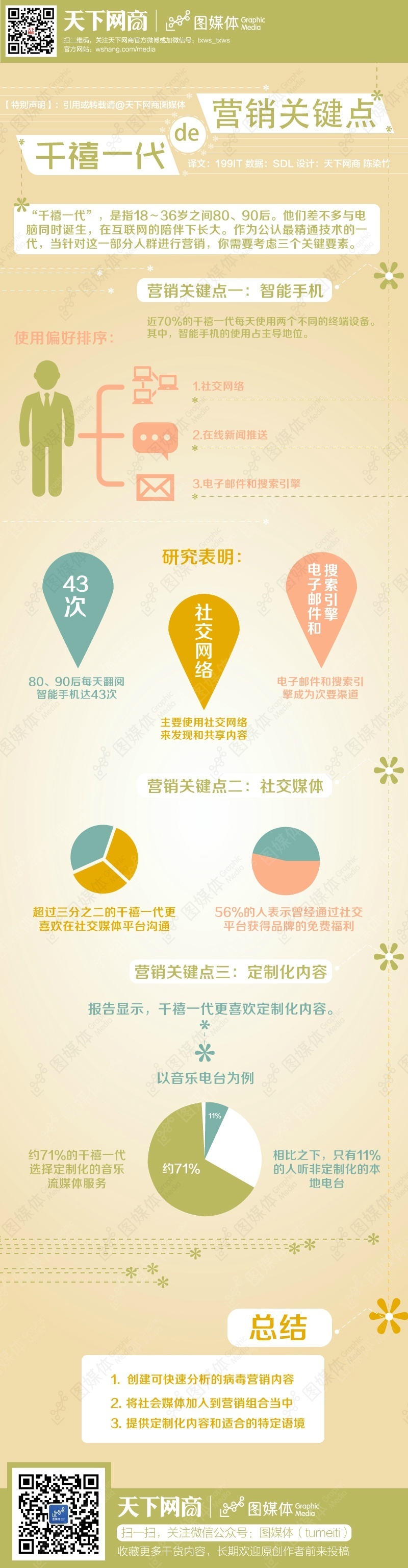 “千禧一代”是指18~36歲之間80、90后。他們差不多與電腦同時(shí)誕生,在互聯(lián)網(wǎng)的陪伴下長(cháng)大。針對這一部分人群進(jìn)行營(yíng)銷(xiāo),你需要考慮三個(gè)關(guān)鍵要素:智能手機、社交媒體和定制化內容。